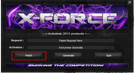 6. xforce의 팝업창 하단에 Patch라는 것을 누른 후 successfully patched라는 문구가 나오는 것을 확인하기.